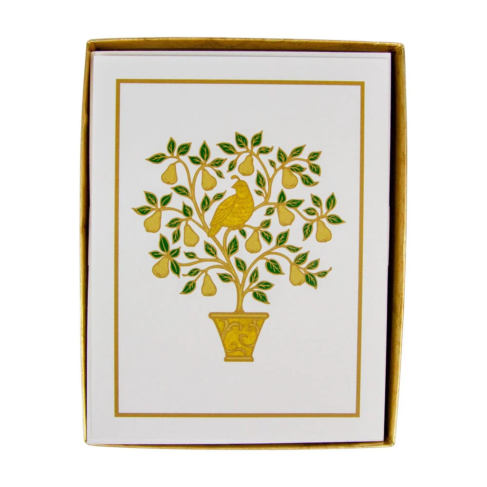 Caspari Partridge in a Pear Tree Foil Embossed Large Boxed Christmas Cards