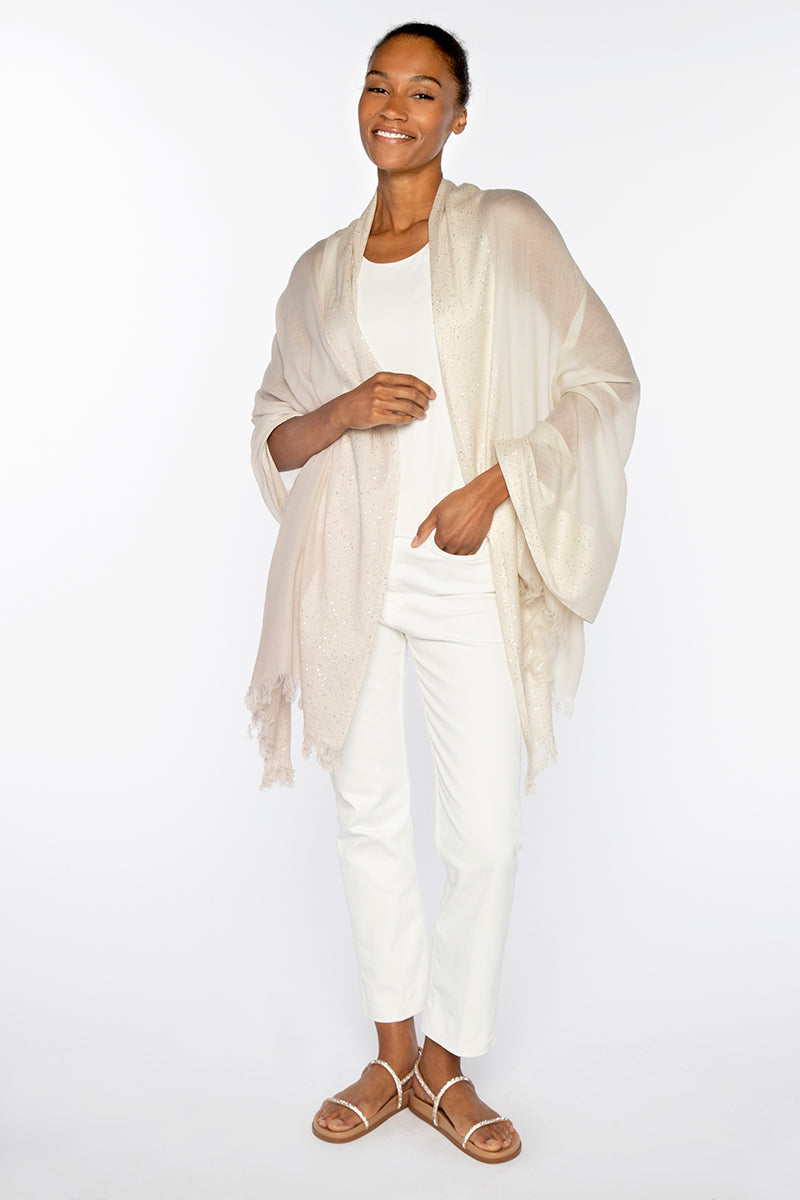 Kinross Lofty Lurex Short Sleeve Crew in Ivory