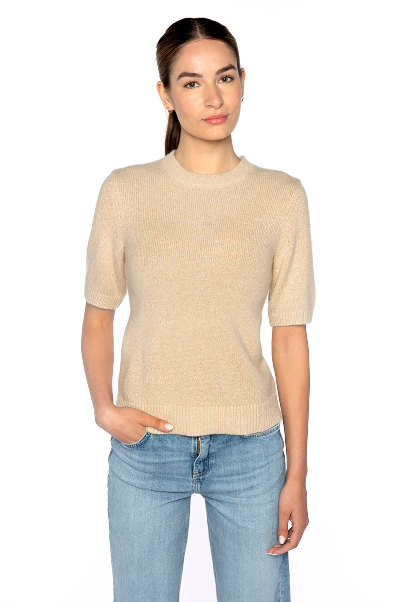 Kinross Lofty Lurex Short Sleeve Crew in Blonde