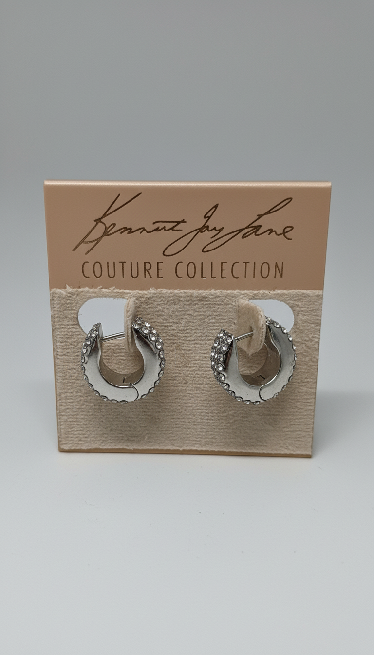 Kenneth Jay Lane Silver with Crystal Pierced Huggie Earring