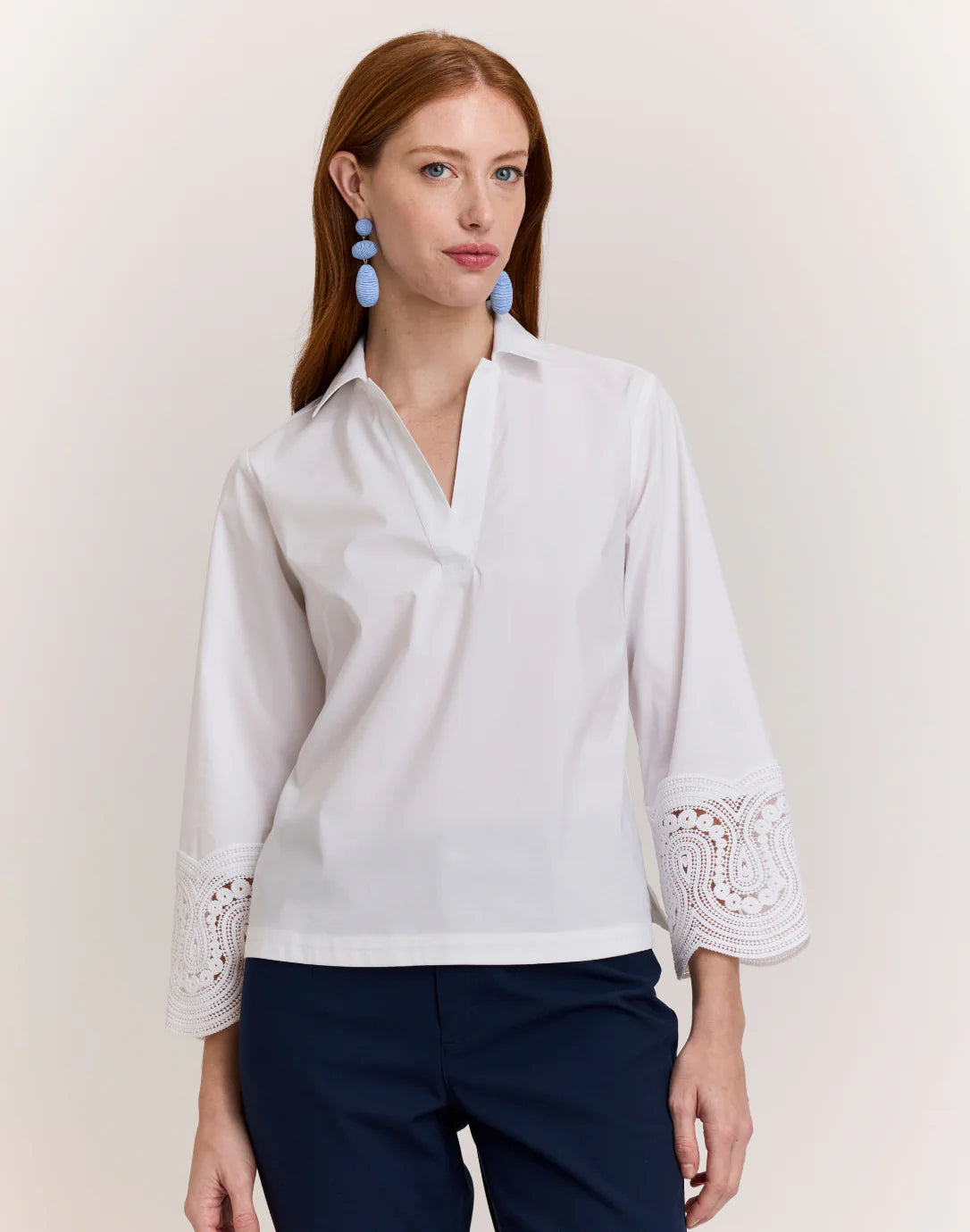 Hinson Wu Mona Bracelet Sleeve Lace Top in White
