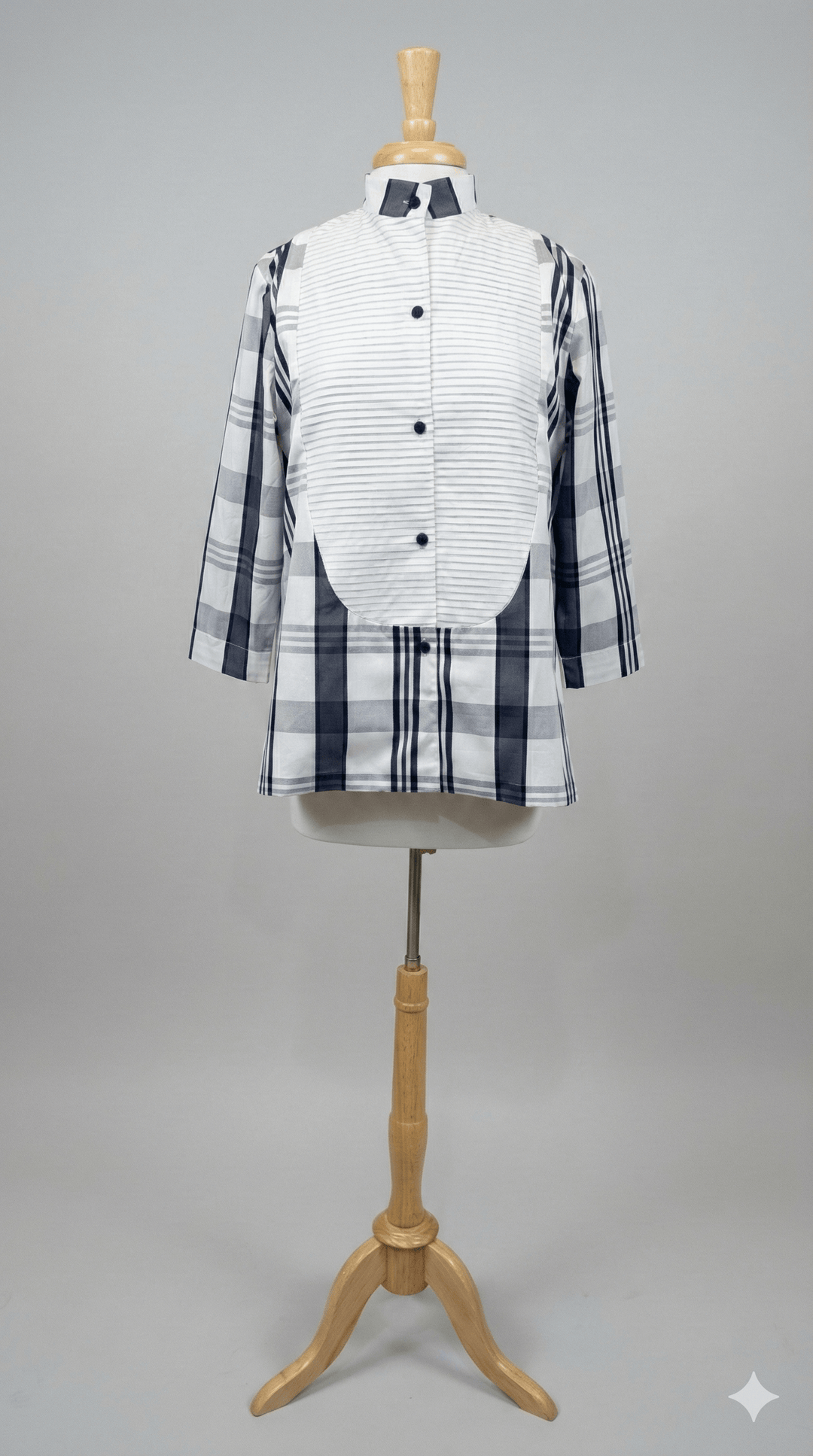 Lorain Croft Simple Tib Tux Shirt in White & Navy Plaid