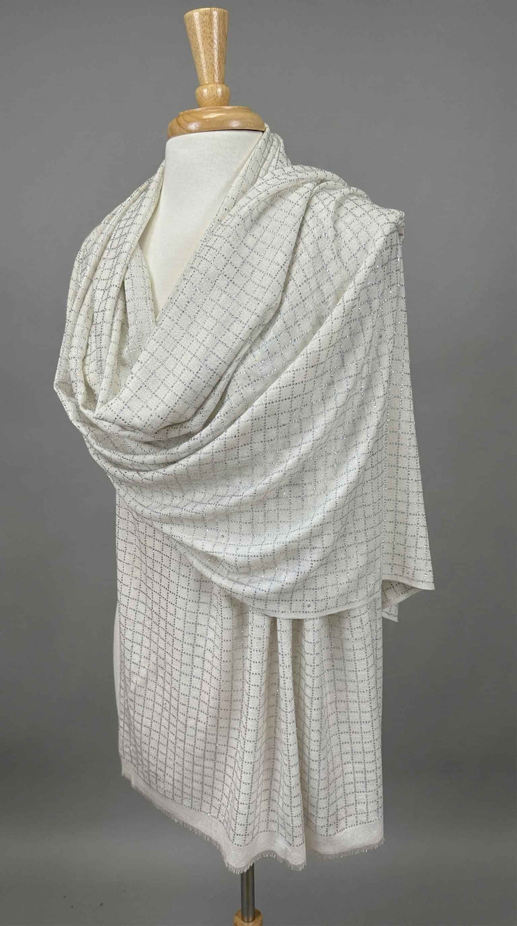 K Janavi Check and Lines Stole in Ivory