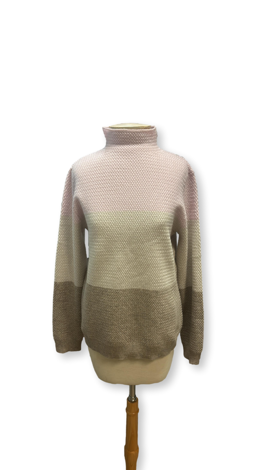 Kinross Cashmere Textured Color-block Funnel in Ballet Multi