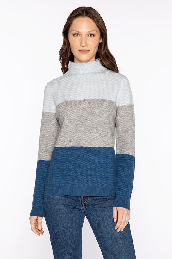 Kinross Cashmere Textured Color-block Funnel in Ice Blue Multi