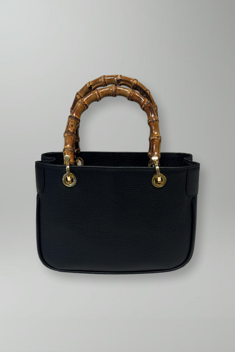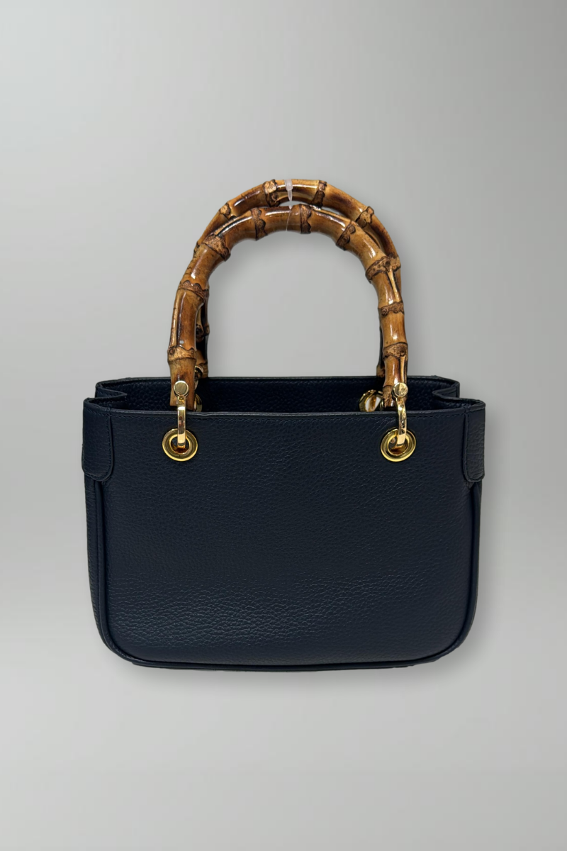 Italian Mini Navy Deerskin Bag with Bamboo Handles