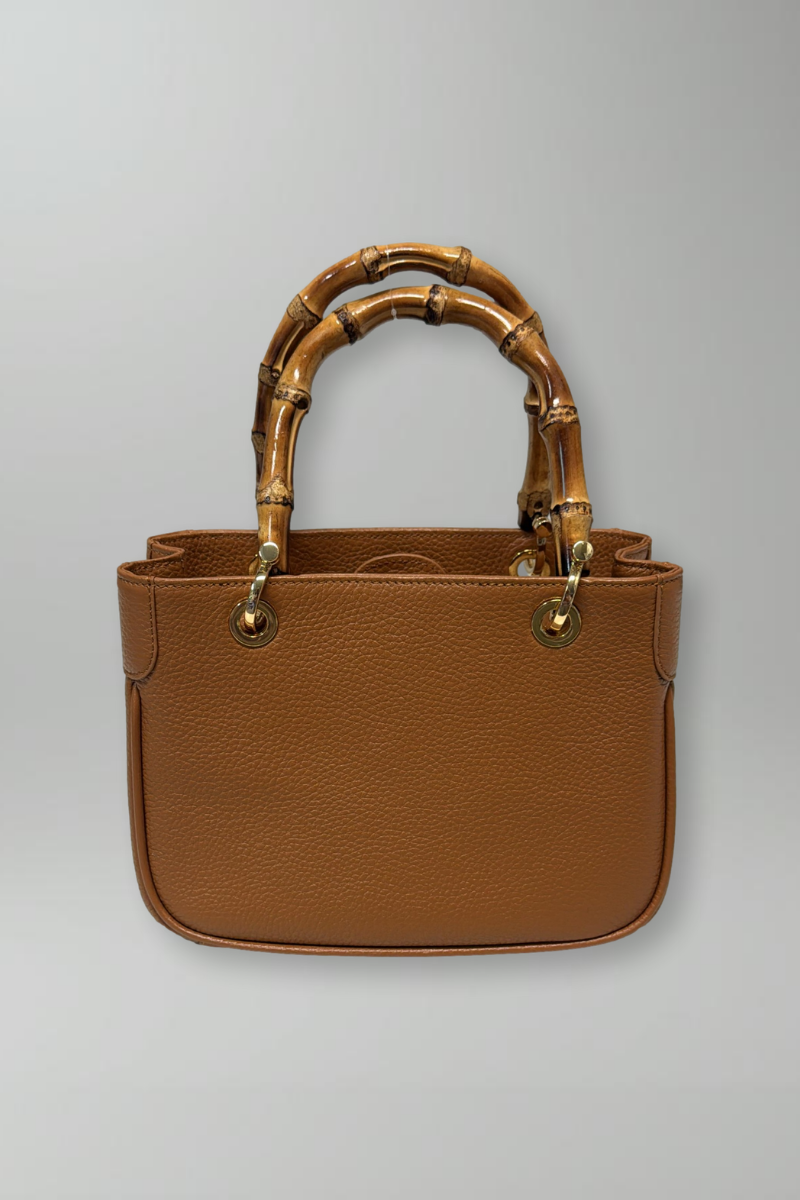 Italian Mini Tan Deerskin Bag with Bamboo Handles