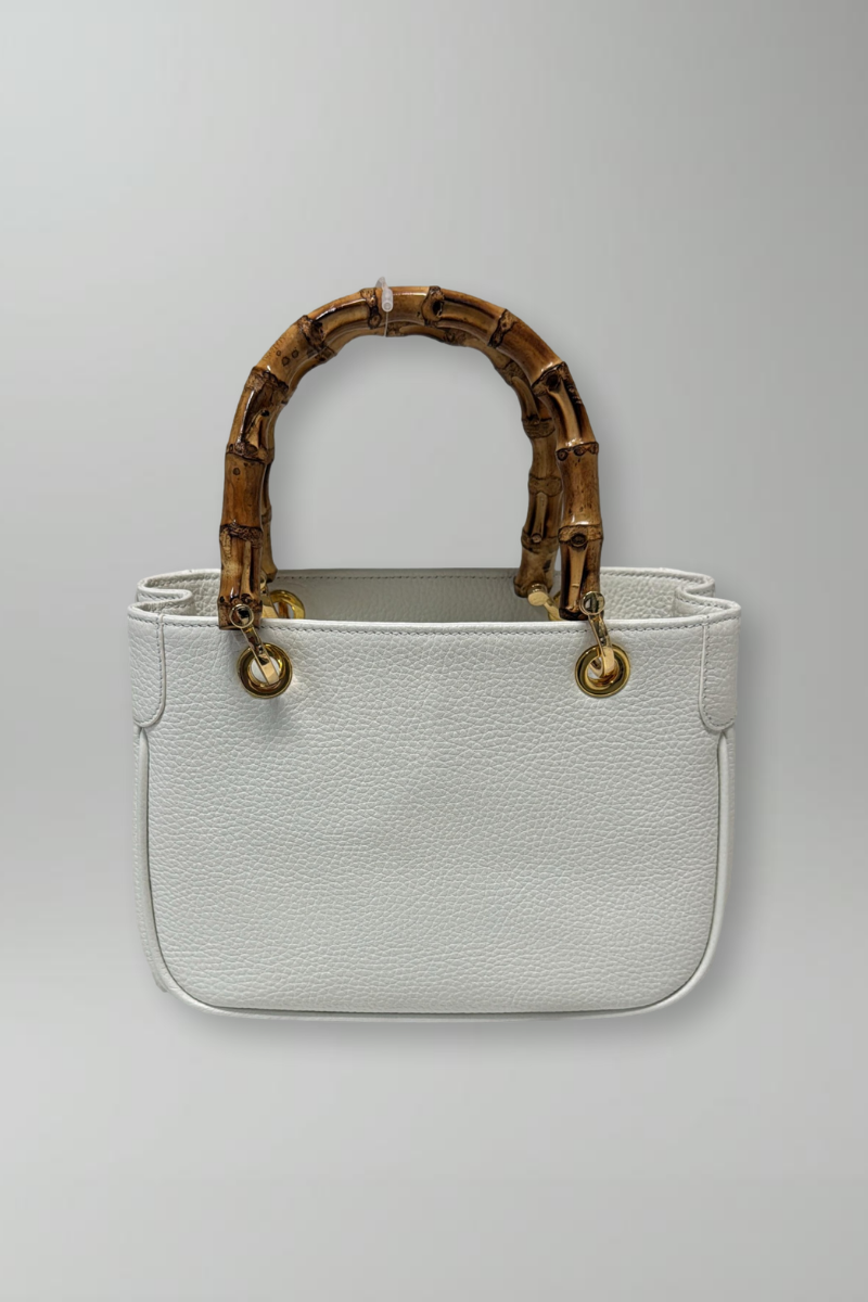 Italian Mini White Deerskin Bag with Bamboo Handles