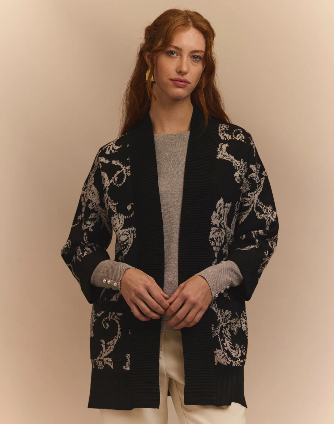 Long Sleeve Color Block Open Cardigan in Blue and White