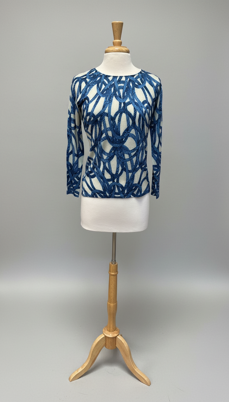 Richard Grand Cream and Blue Floral Embroidered Sweater