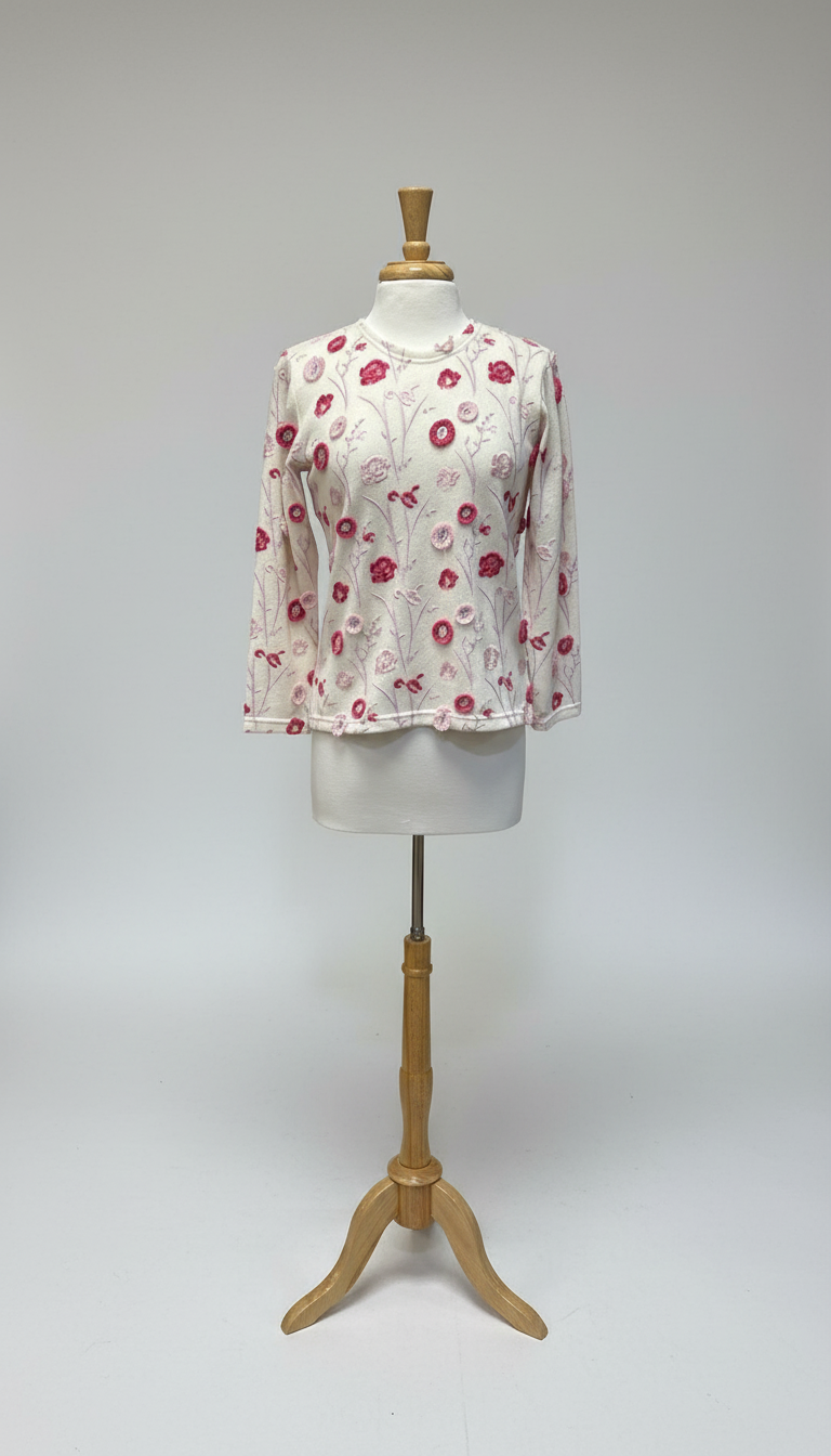 Richard Grand Cream and Pink Floral Embroidered Sweater