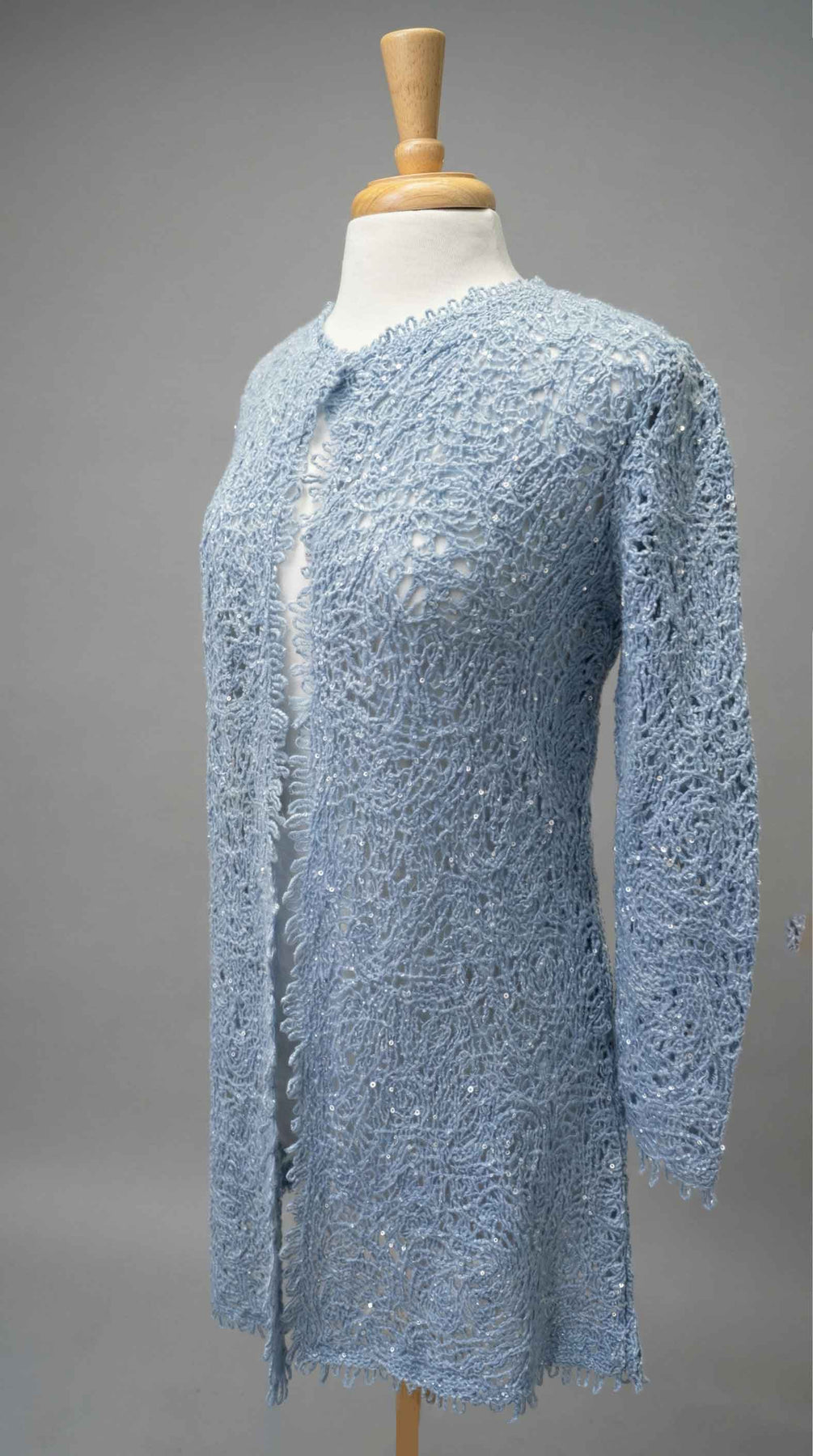 Richard Grand Long Macrame Duster in Sky Blue - Mildred Hoit